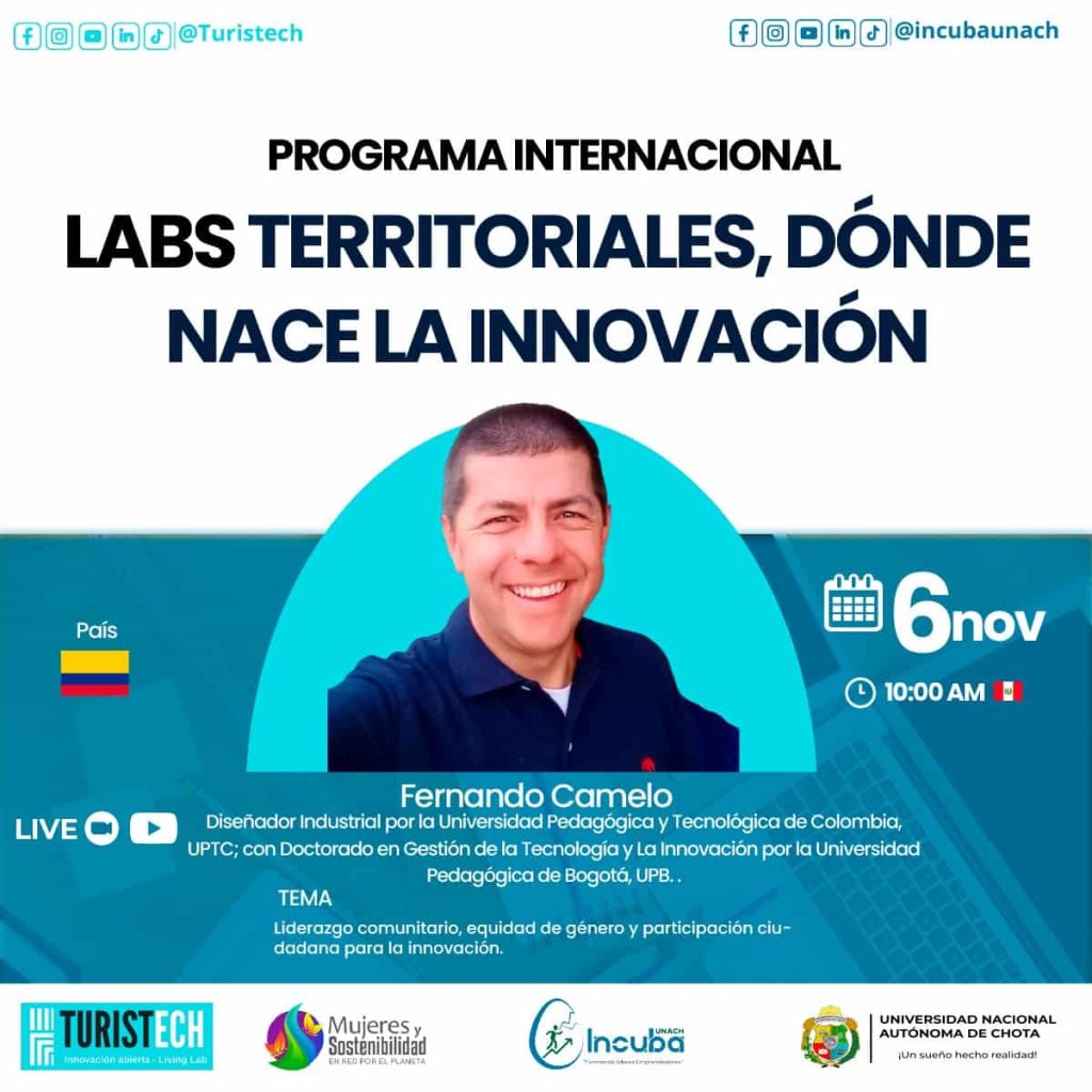 El Programa Internacional LABS TERRITORIALES ha convocado a expertos que están redefiniendo el papel de las instituciones académicas en el desarrollo local. En este contexto, la participación del Fernando Camelo, Diseñador Industrial UPTC con Doctorado en Gestión de la Tecnología y La Innovación UPB. Coordinador para Suramérica Red LAtir, se centra en un tema esencial para la vinculación: «Universidades como laboratorios de innovación territorial».