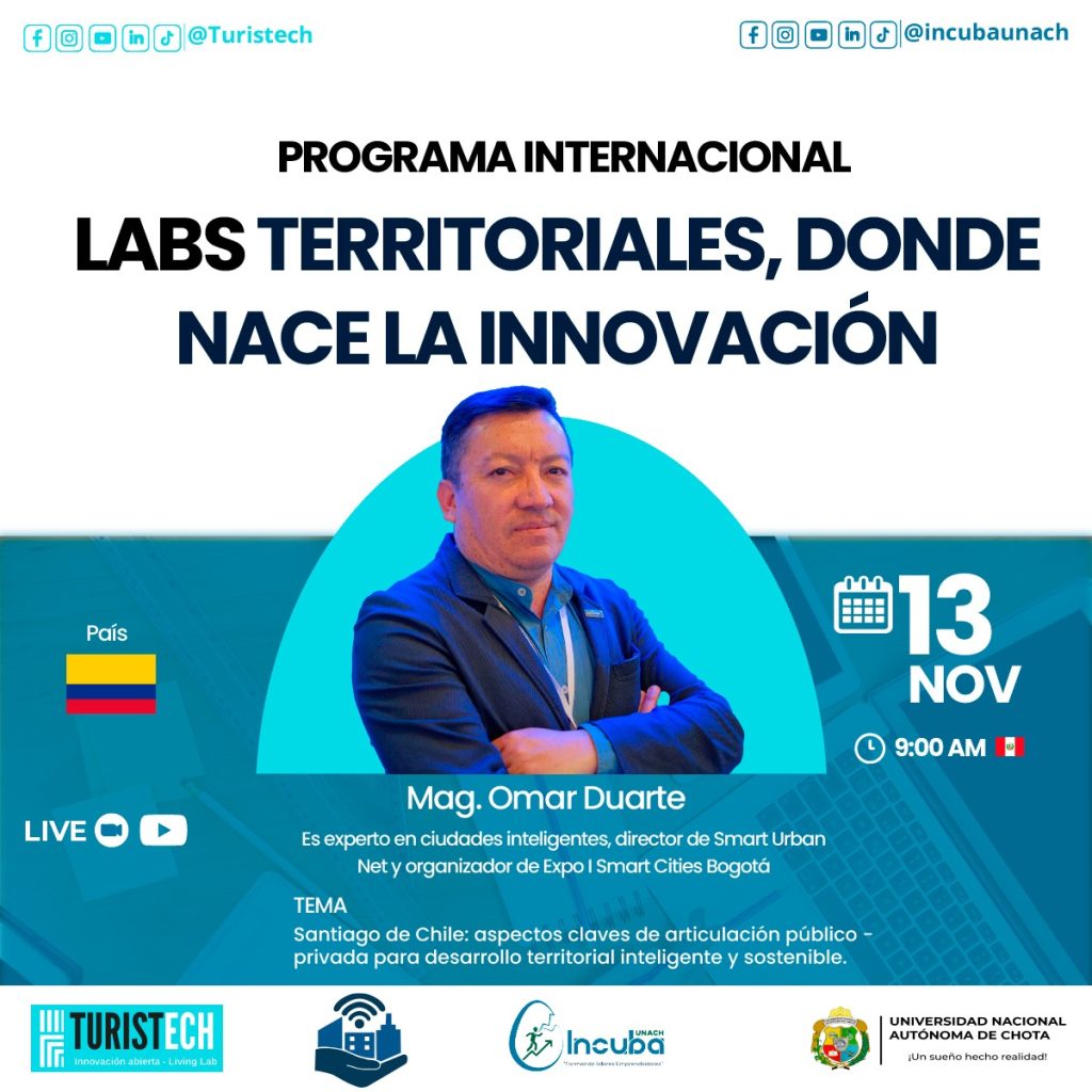El Programa Internacional LABS TERRITORIALES, recibe este jueves 13 de Noviembre, 9 am. Peru, al Mag. Omar Duarte, experto en ciudades inteligentes y director de Smart Urban Net, para analizar un modelo de gobernanza esencial para el desarrollo territorial: la articulación entre el sector público y el privado.