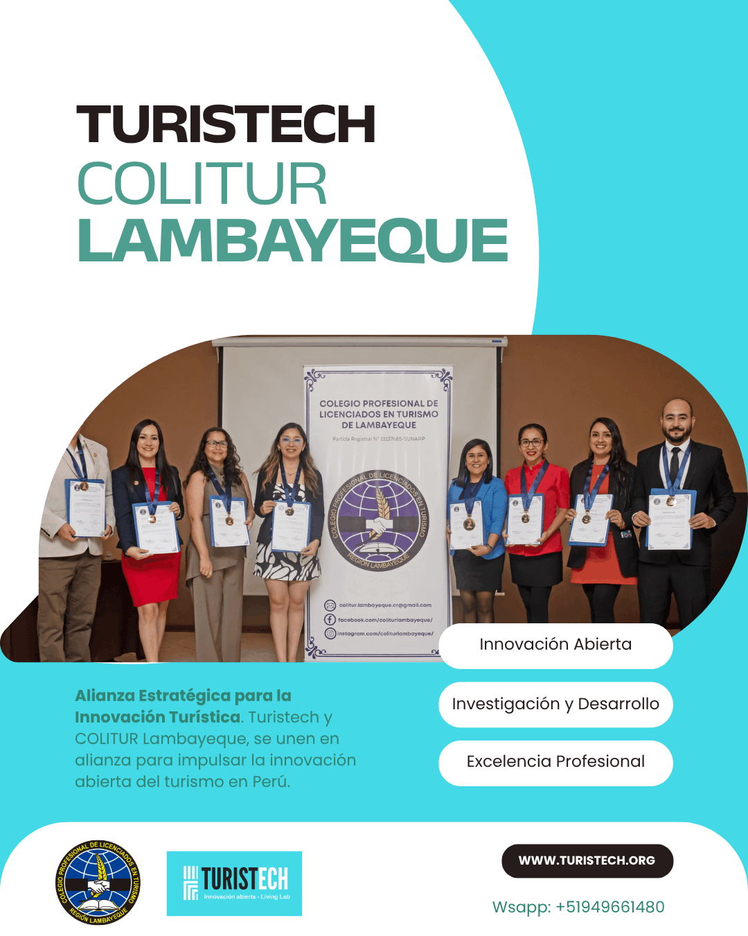 En un paso decisivo para la innovación del sector en el norte del Perú, Turistech y el Colegio Profesional de Licenciados en Turismo de Lambayeque (COLITUR Lambayeque) han formalizado un Convenio Marco de Cooperación Interinstitucional. Esta alianza, tiene como objetivo central unir esfuerzos y recursos técnicos para fortalecer la actividad turística nacional a través de la innovación abierta y la excelencia profesional.